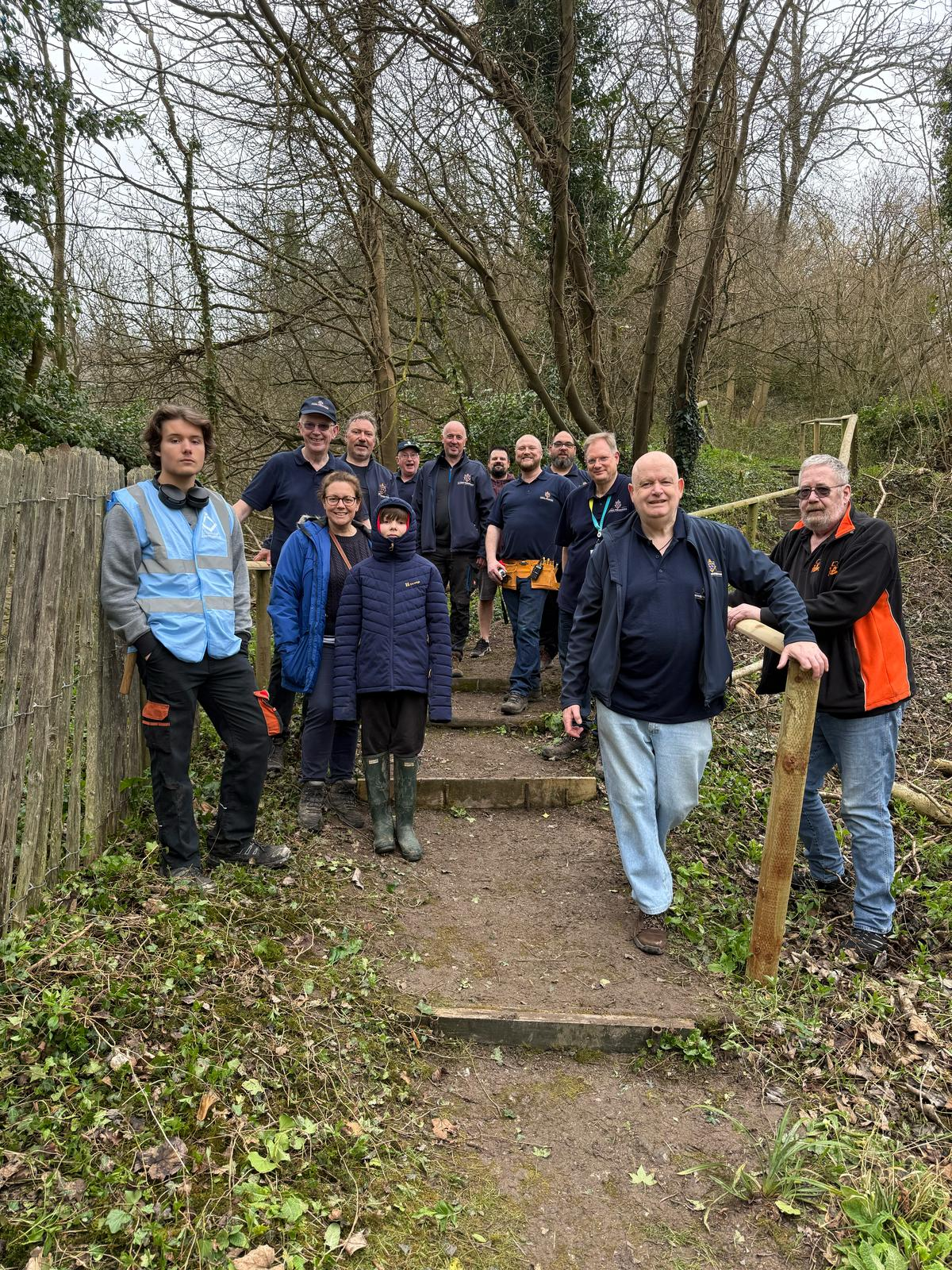 Freemasons from across North and West Sussex came together last month to volunteer their time at Amberley Museum, helping to prepare the site for its summer visitors. Their work primarily focused on enhancing the Museum’s nature trail by clearing vegetation, repairing fences, and reinstating steps.